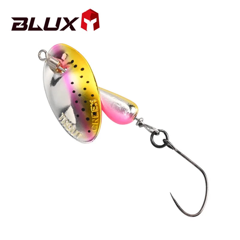 BLUX AR-S Rotating Spinner Metal Lure 2.1g/3.5g Single Hook Artificial Bait Copper Blade Spoon Stream Area Trout Fishing Lure - Color E / 2.1g